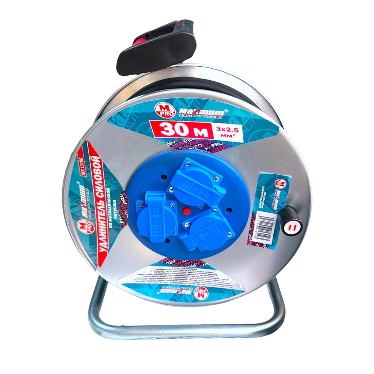 Удлинитель 30 метров на алюминиевой катушке с кабелем КГ сечением 3х2,5 от "Maximum Quality Tools" оборудован одной выносной EURO розеткой и защитой от перегрузок. Силовой улинитель с заземлением на 220 Вольт предназначен для временного подключения удаленных объектов как внутри помещений, так и на улице. Длина кабеля 30 метров, он выполнен на прочной алюминиевой катушке с металлической усиленной стойкой. Влагозащитные заглушки на розетках предотвращают попадание конденсата.