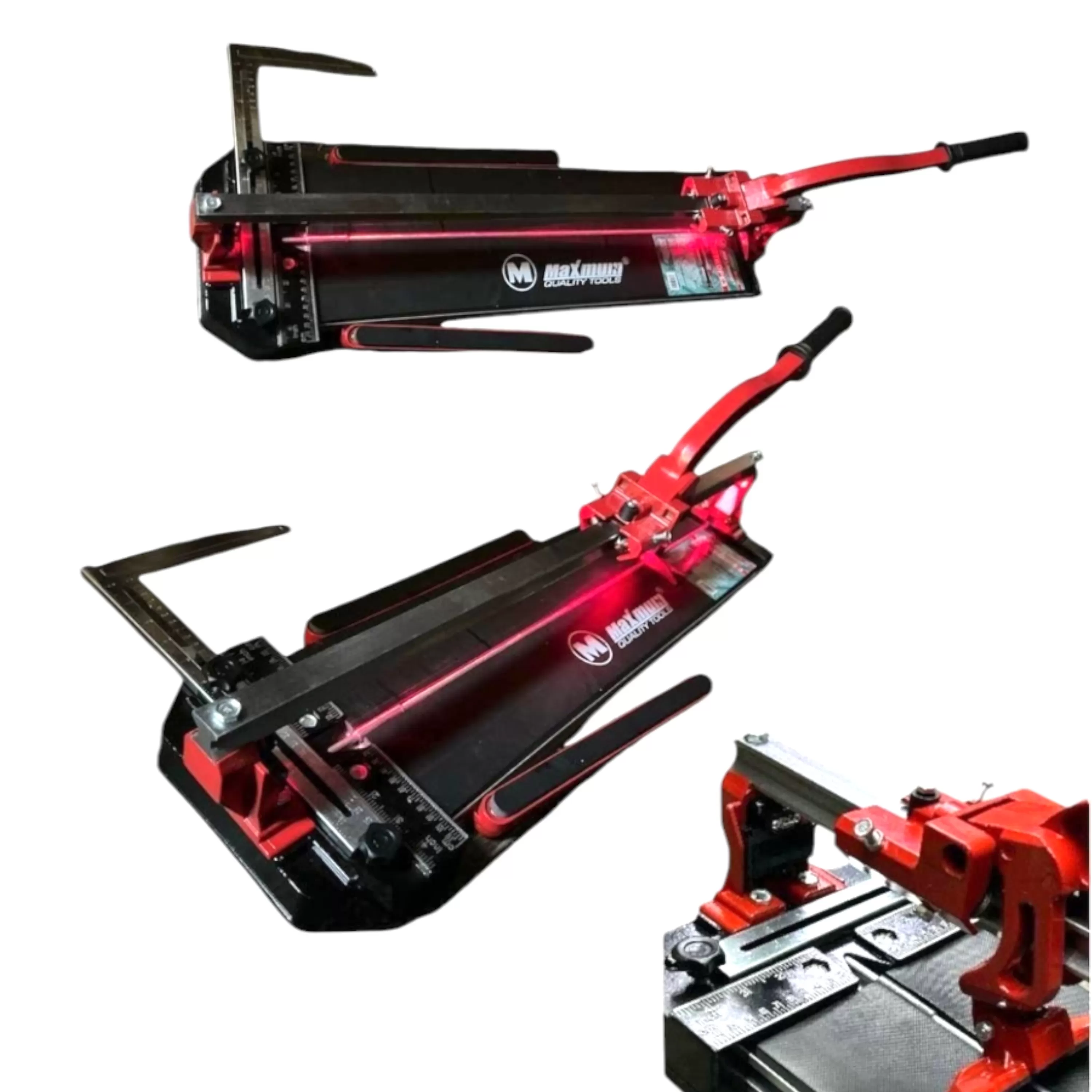 Поворотный угольник-угломер — плитка режется под углом до 45 градусов, размер заготовки удобно регулируется и можно дополнительно фиксировать ее.
