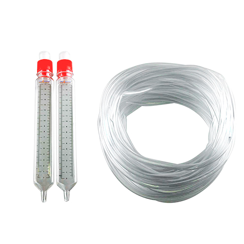Пластиковые колбы со шкалой выступают контрольными сосудами, а специальный ползунок позволяет сделать отметку полученного результата.
